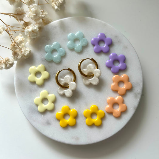 Boucles d'oreilles fleur jaune pastel - Fait main