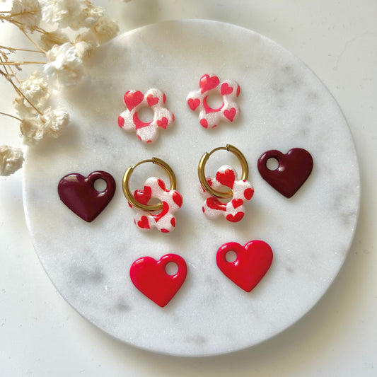Boucles d'oreilles fleur coeur rouge - Fait main