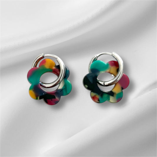 Boucles d'oreilles fleur coeur rouge - Fait main