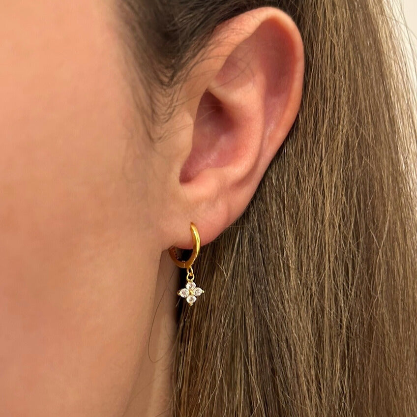 Creole earring in 925 sterling silver with tassel of 4 zircons Creole diameter 9 mm Tassel dimension 5x5 mm