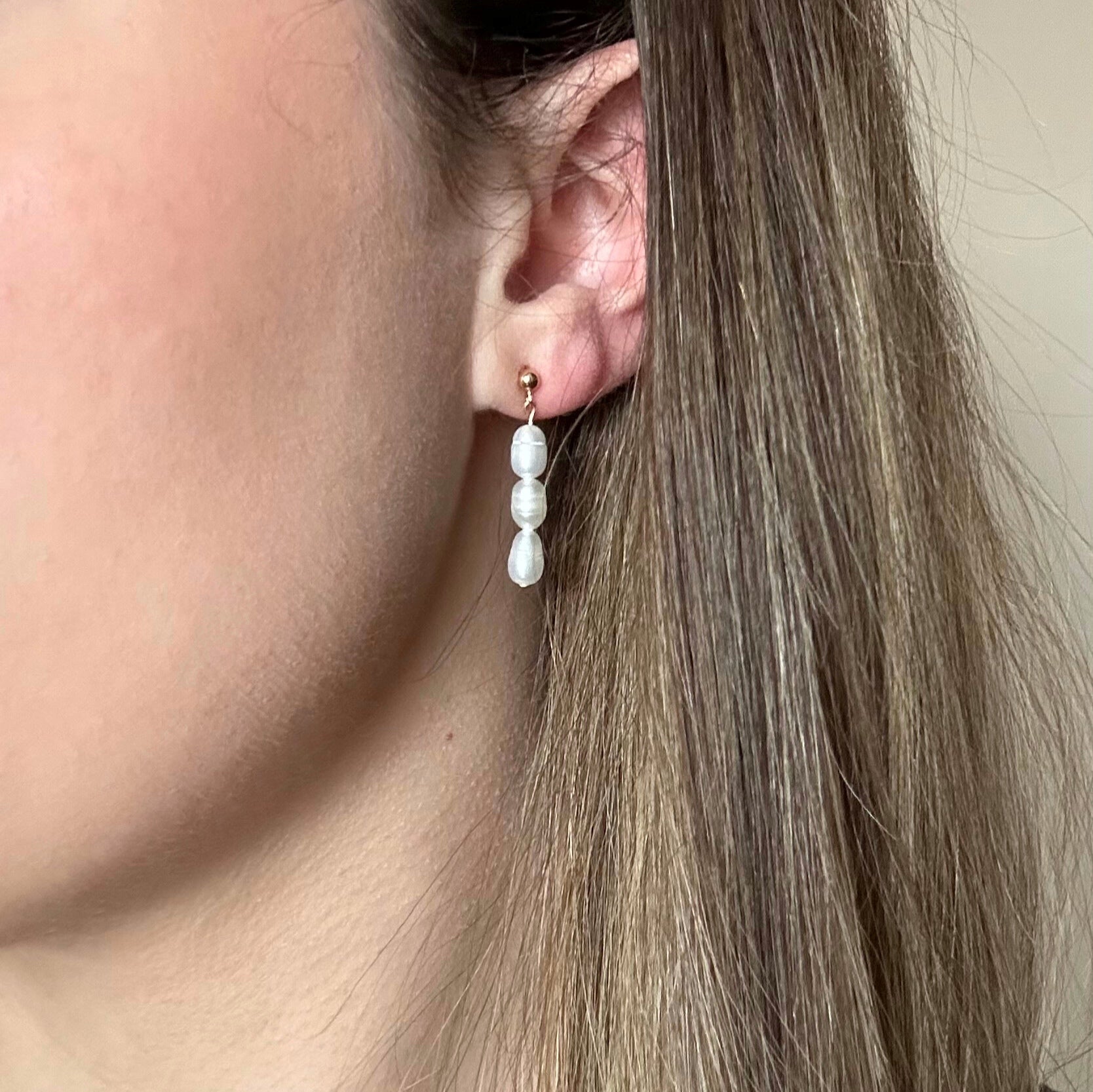 Boucles d’oreilles trois perles d’eau douce