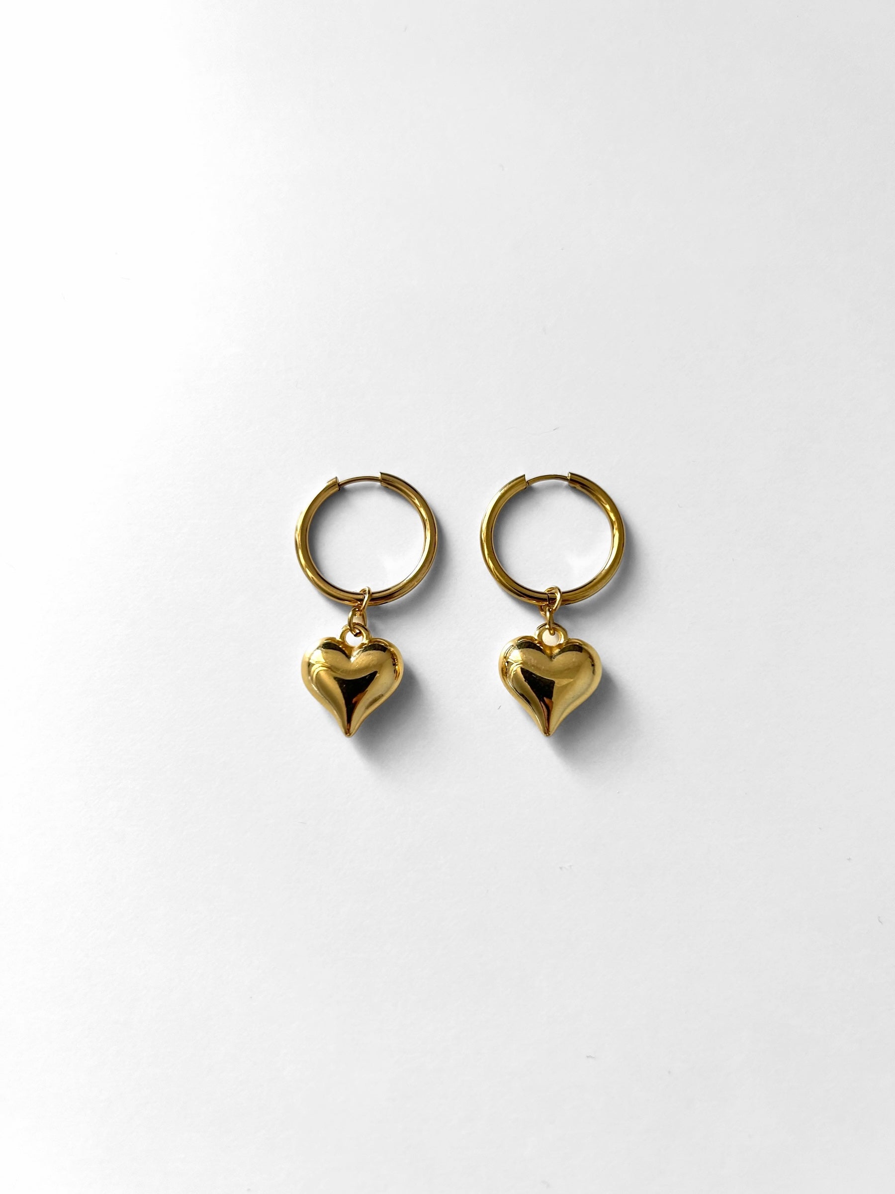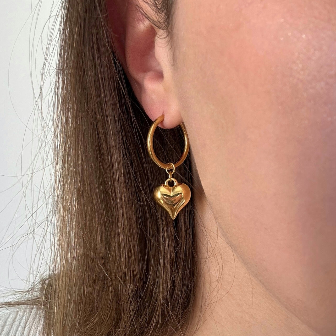Paire de boucles d’oreilles en acier inoxydable et cœurs.