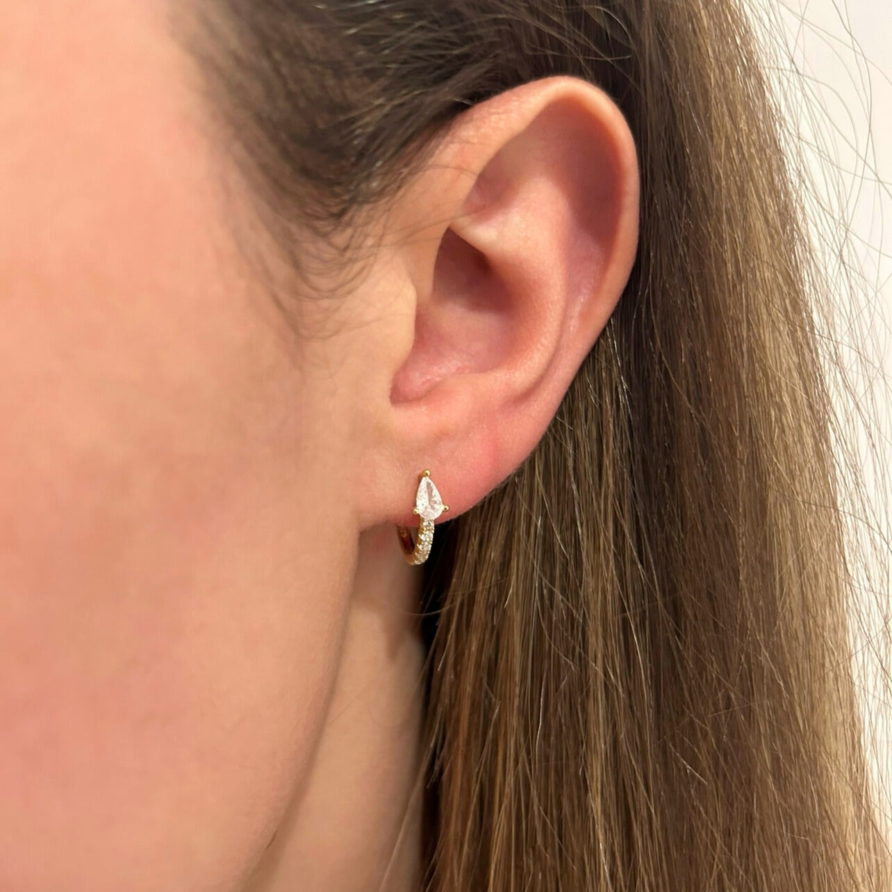 Creole earring in 925 sterling silver with encrusted zircons Diameter 18 mm