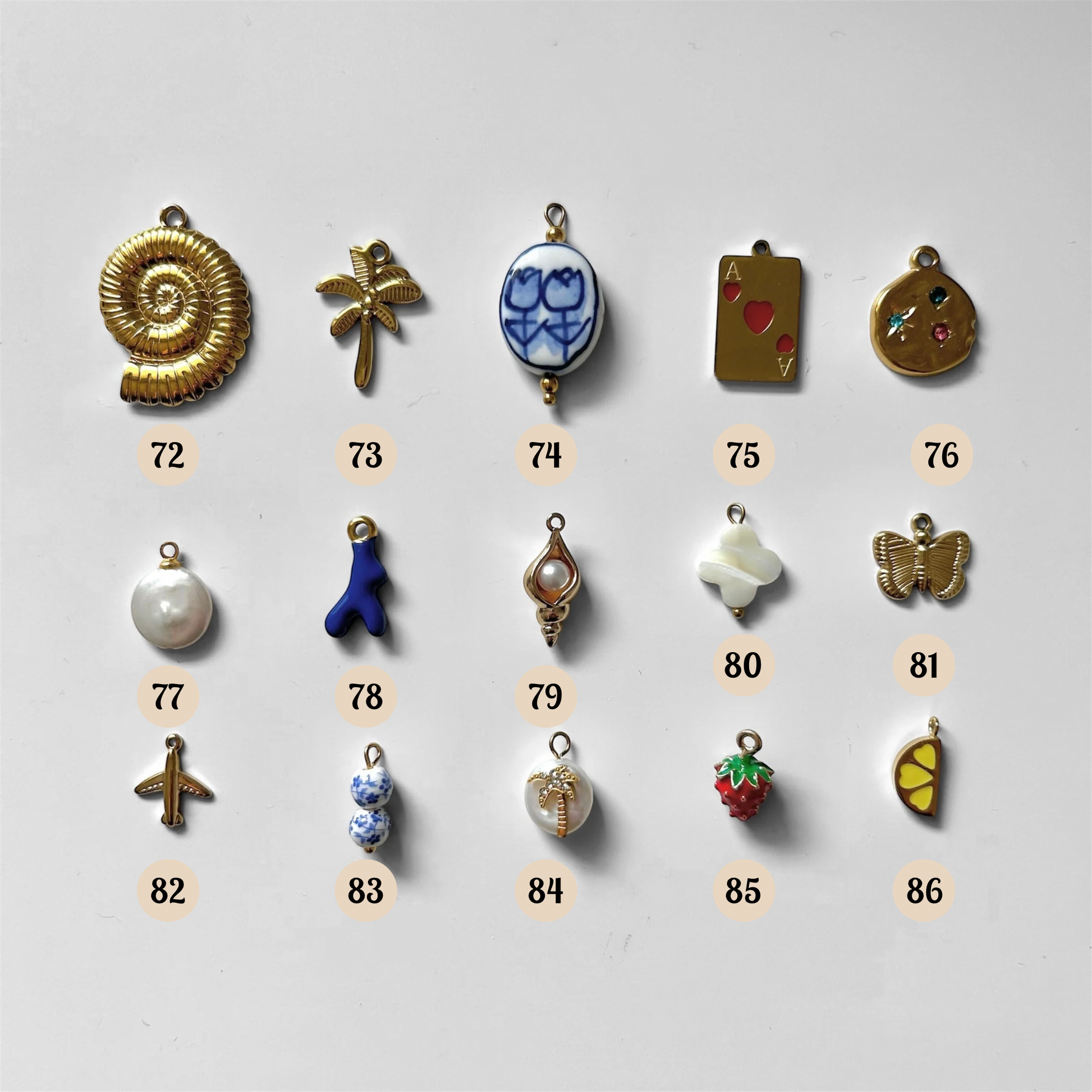 Charms : En acier inoxydable, d’acrylique et de verre pour certaines pièces, rendant ces dernières plus délicates.