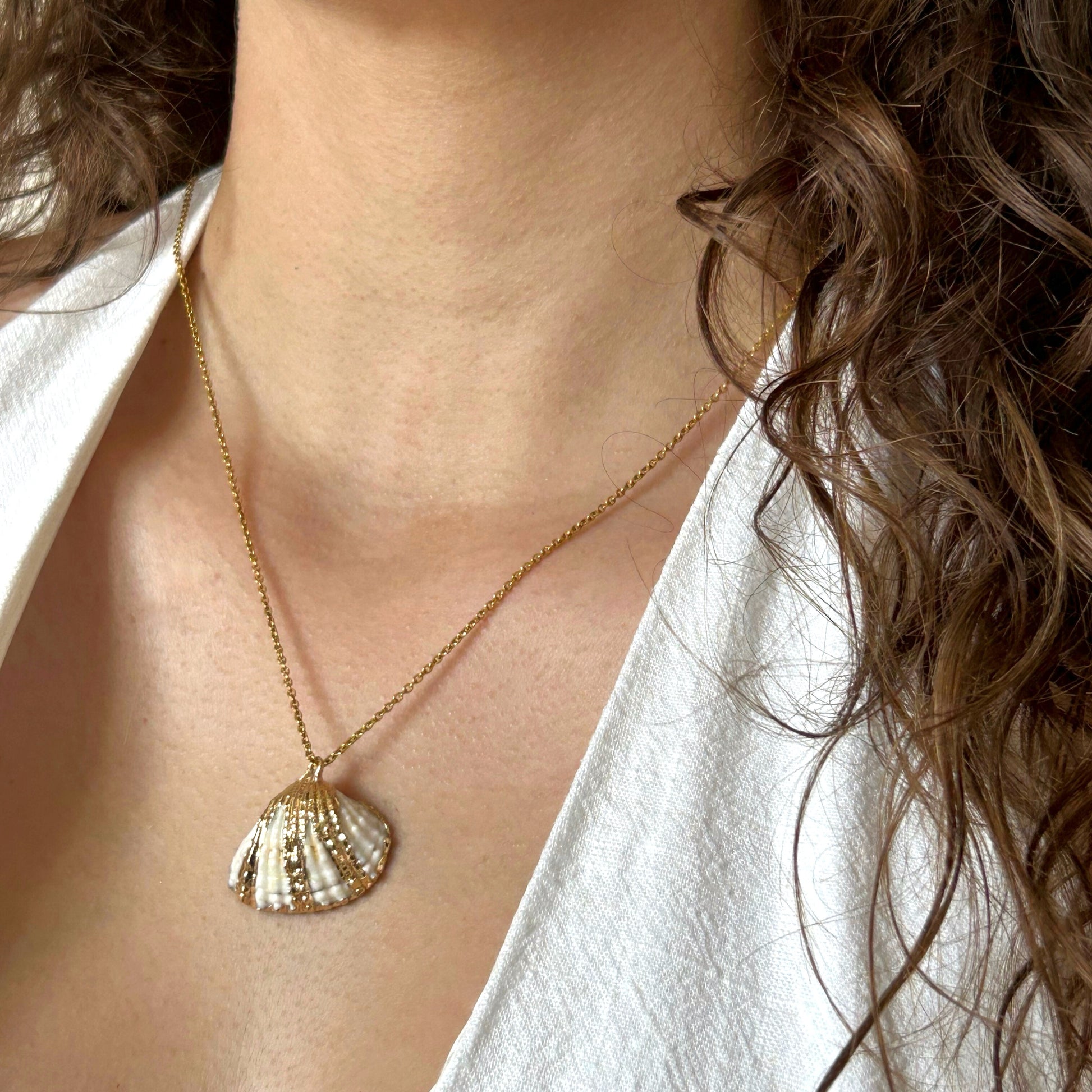 Ce collier en acier inoxydable met en valeur un pendentif coquillage délicat, comme un souvenir précieux ramené de la mer. Résistant à l’eau et au temps, il se porte chaque jour comme un clin d’œil à l’été.