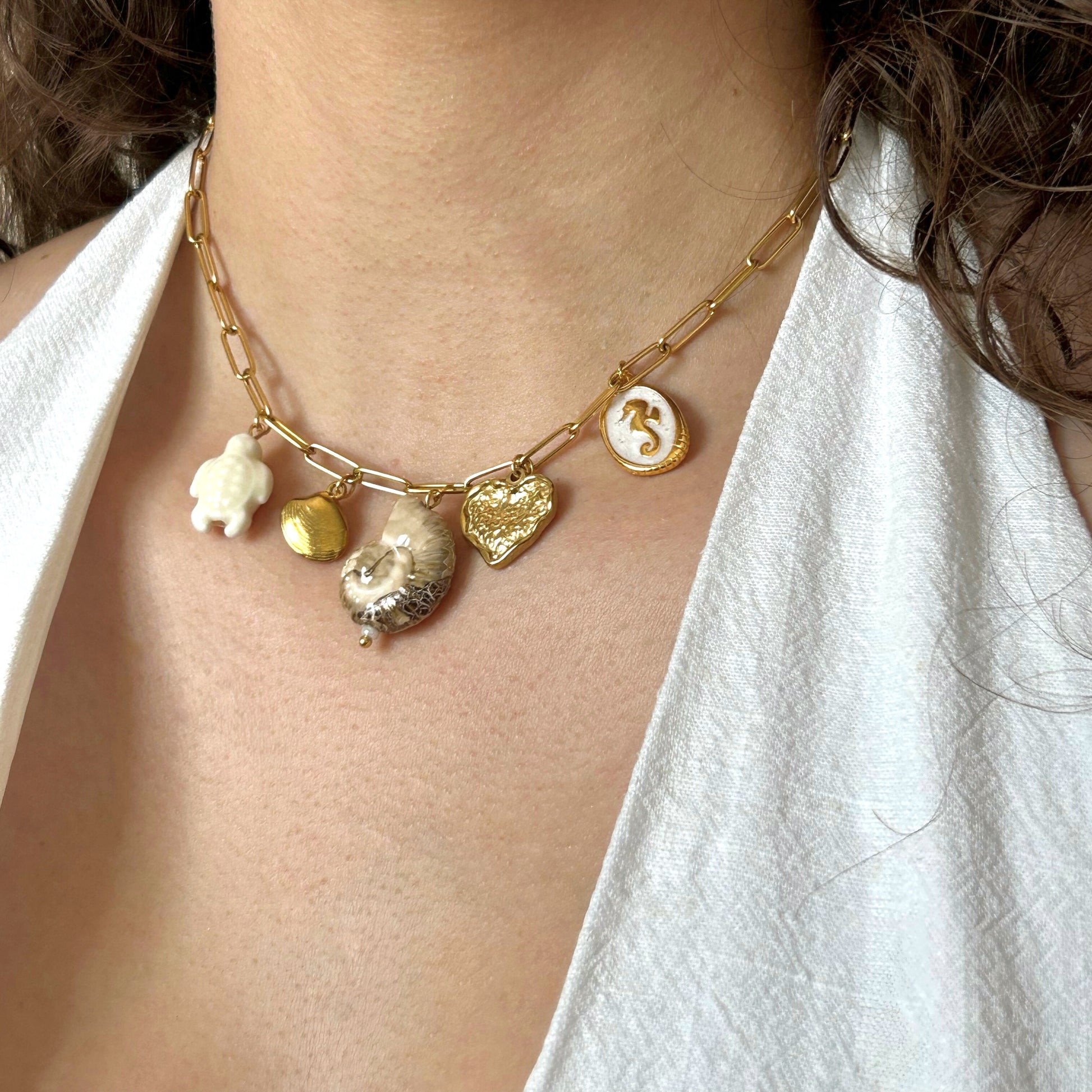 Envie d’un bijou qui vous ressemble ? Créez votre propre version grâce au bar à charms disponible sur notre site. Composez un collier 100 % vous, au gré de vos envies et de votre été.