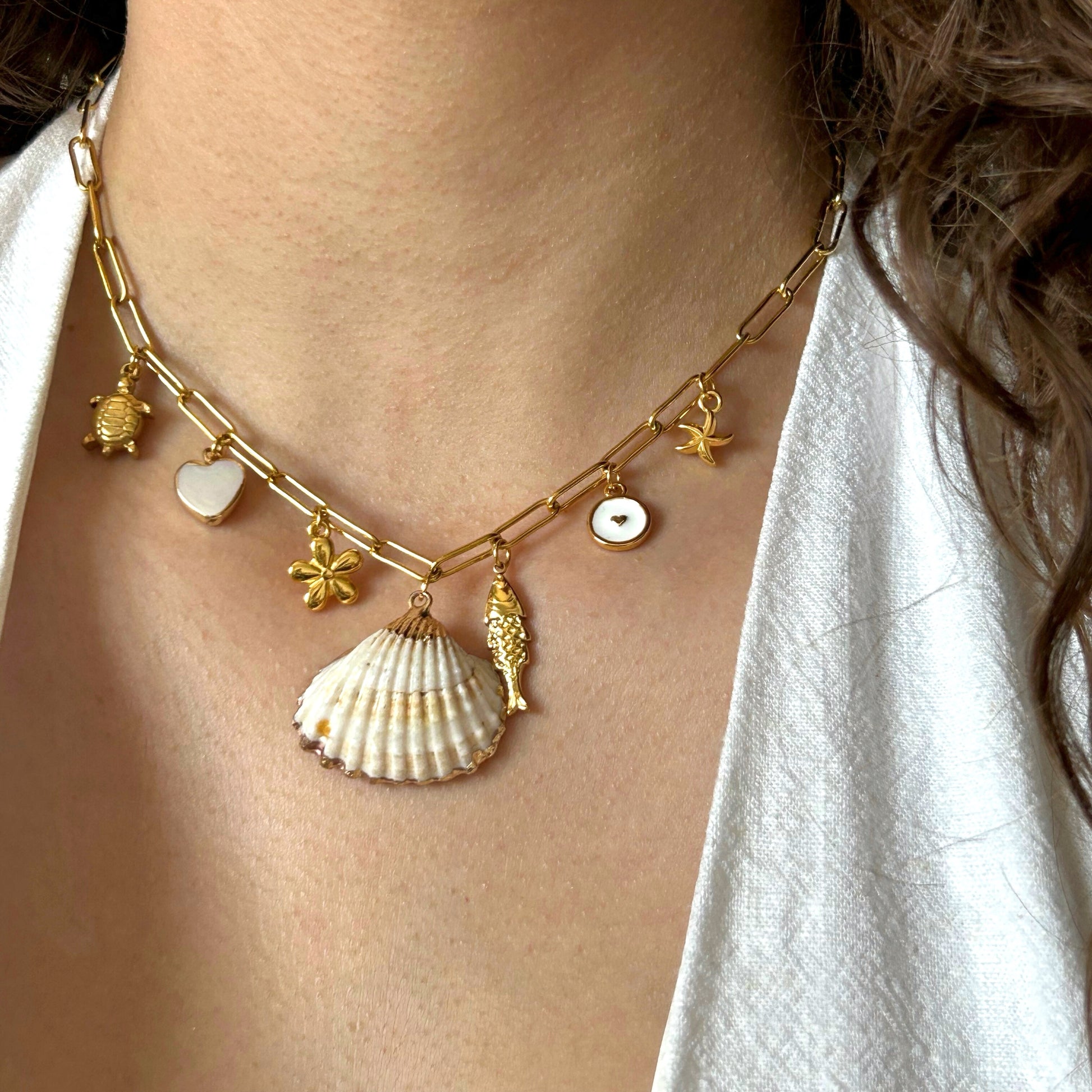 Une création pensée pour l’été, légère, colorée et pleine de bonnes ondes. Ce collier unique est orné de plusieurs charms soigneusement choisis pour refléter l’esprit des beaux jours.